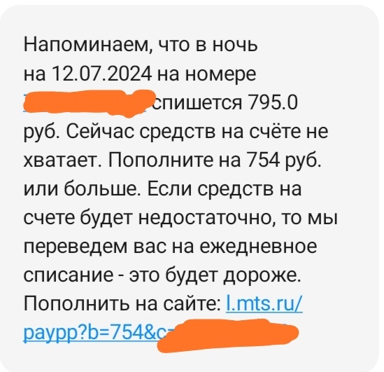 Думаю ни для кого не секрет, что МТС, как и другие операторы, регулярно поднимают стоимость тарифов, и многие с этим смирились. Однако раньше хотя бы предупреждали о том, что со следующего месяца абонентская плата будет увеличена, а теперь просто молча делают это в одностороннем порядке, не считая нужным даже уведомить клиента. Сегодня пришла вот такая смс.