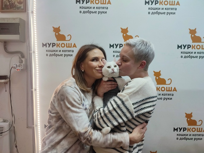 Белоснежному 4-летнему котику Бри удалось встретить сразу двух хозяек, которые забрали его в дом, полный уюта и атмосферы любви! Всем сердцем радуемся за котика!