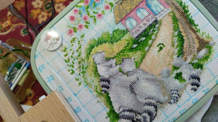 К моменту создания поста, я уже вышила почти половину картины)