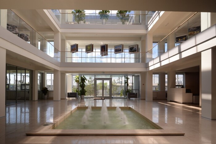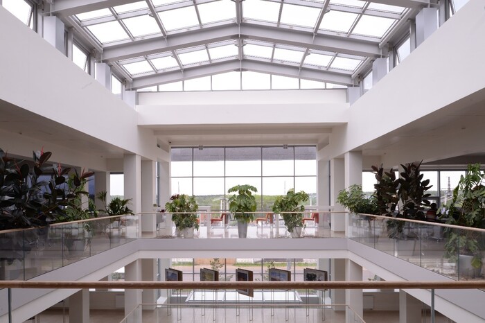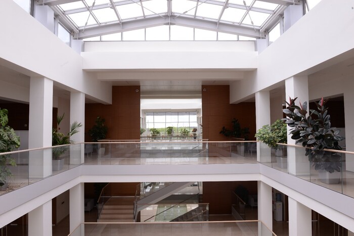 В здании много света, а за счет стеклянных конструкций ощущается масштаб пространства.