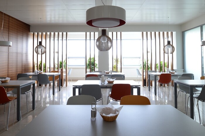 Обедают сотрудники в столовой, которая вполне похожа на кафе хорошего уровня. Причем обеды за счет предприятия.