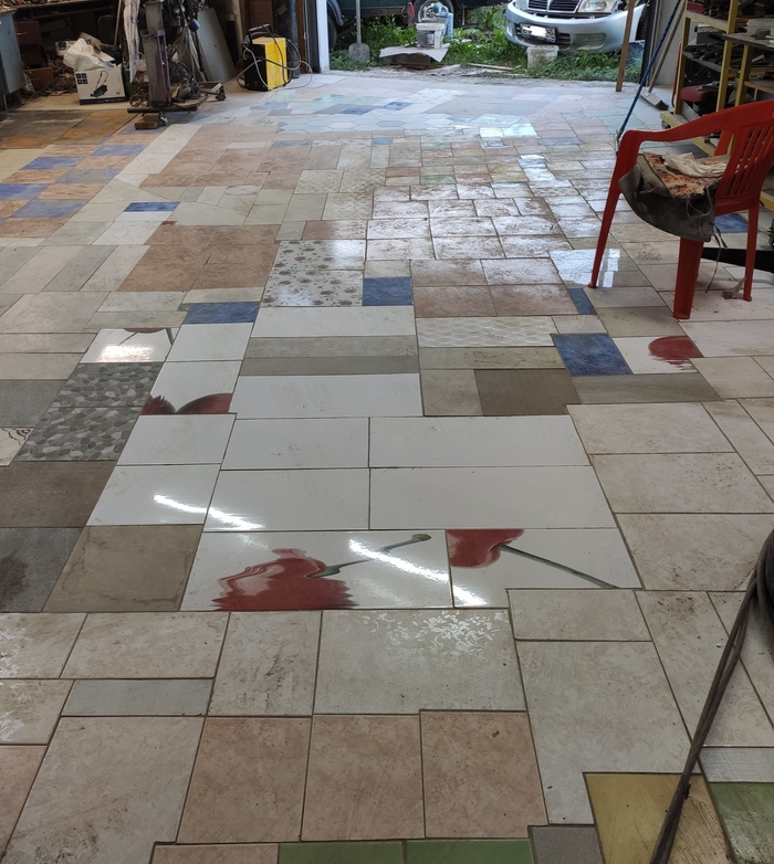 Тут извиняться не надо- я не обижусь. Я просто хочу напомнить, что это пол не в жилом доме, а в гараже. Там, где я занимаюсь всякой хуйней : варю, пилю, режу , разбираю, собираю, (всякие механизмы, машины), в общем, это для меня место, можно сказать, для собственного самовыражения. На полу этом часто бывает всякая грязь, масло, антифриз, опилки и тд. И для поддержания порядка в гараже у меня была острая необходимость в покрытии пола.