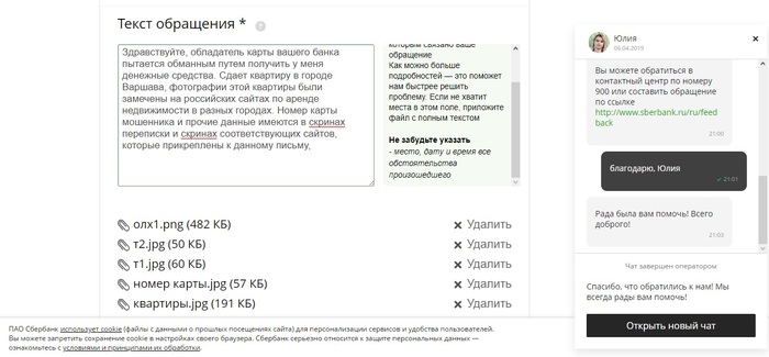 Пишу в поддержку сбера. Меня немного напрягло, когда консультант спросила, делала ли я переводы мошеннику, сразу вспомнилось то, что кто-то писал, будто сбер не отреагировал на мошенника, потому что перевод не был совершен. Нет денег - нет дела. Однако, она посоветовала мне написать письмо в поддержку, что я и сделала. И приложила все скрины.