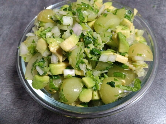 Авокадо нарежьте крупными кубиками, полейте соком лайма, приправьте солью и черным перцем. Кинзу крупно нарежьте.