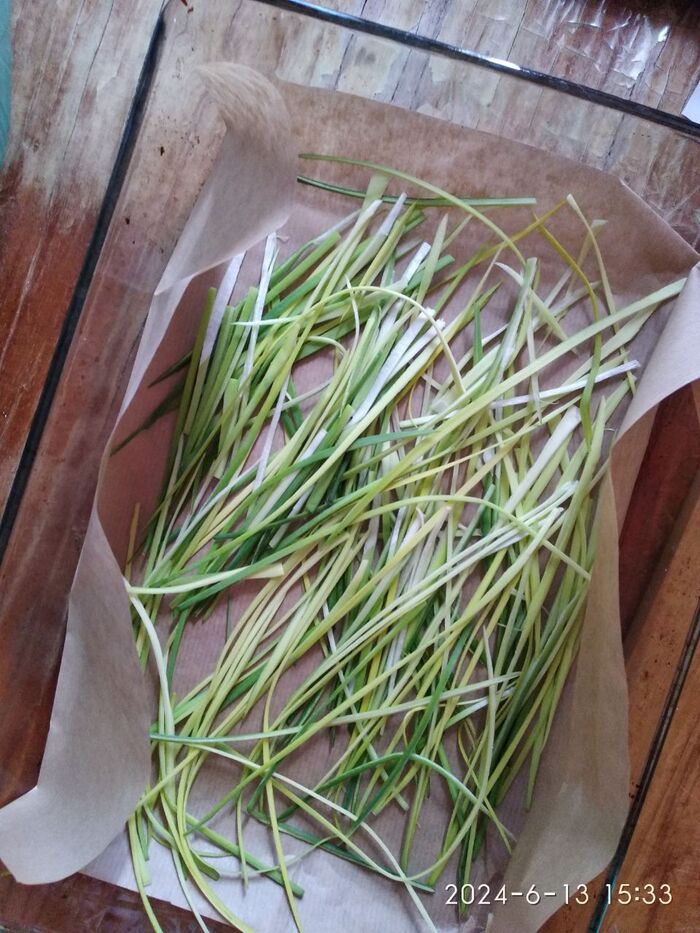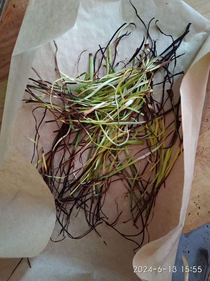 Там в целом все просто. Порей режем на длинные тонкие полосы и сушим под горячими тенами в духовке или, как я уже сказала на солнышке. Свое сено я сожгла за 30 минут. Берите на заметку.
