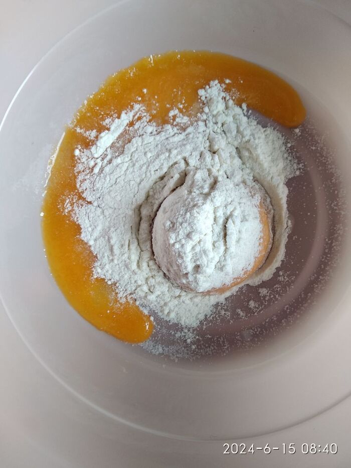 К желткам добавила ст. ложку муки без горки и щепотку соли.