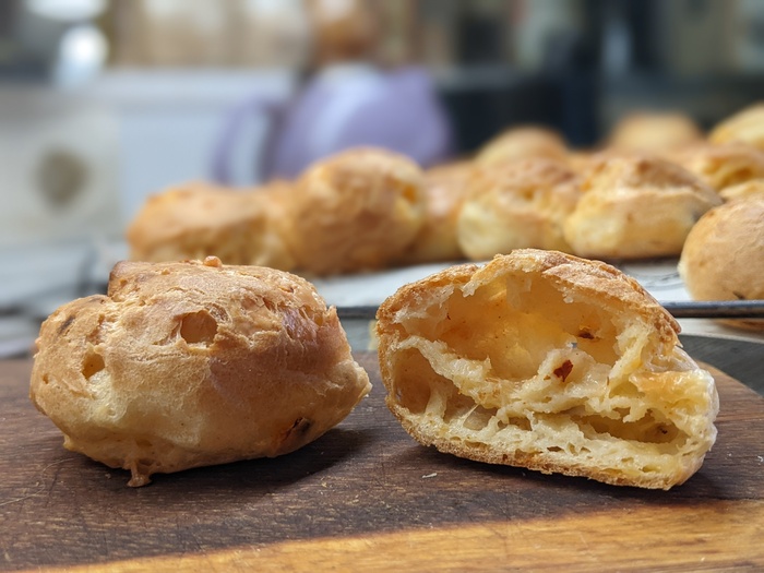 Как-то последние годы за профитролями закрепилось десертное амплуа, а ведь это совершенно универсальная штука - легкие шарики из заварного теста можно начинить чем угодно даже в базовом варианте. А можно сделать сразу закусочные, - к бульону, например. Или вообще так сожрать. Я вот завтра по работе еду с группой ребятишек на пикник, возьму с собой. (У кого уже осень, сочувствую, у нас +26. Справделивости ради, первый раз за 9 лет такой сентябрь, но тем не менее!). Так вот. Ближе к булкам. Вернее, к профитролькам.