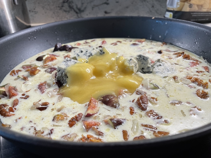 100 гр сыра. У меня был тильзитер. Тут возможны варианты, берите, какой любите, сыр влияет исключительно на оттенки вкуса.