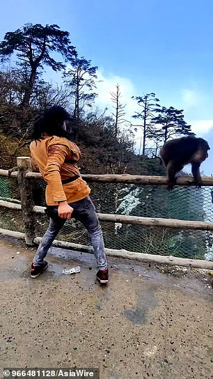 В провинции Сычуань (Китай) мастер восточных единоборств по фамилии Се подрался с двумя тибетскими макаками.
