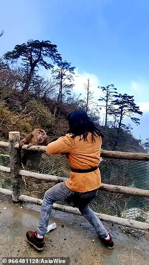 Но макак не оценил этот жест и напал на Се — а тот в ответ ударил его.