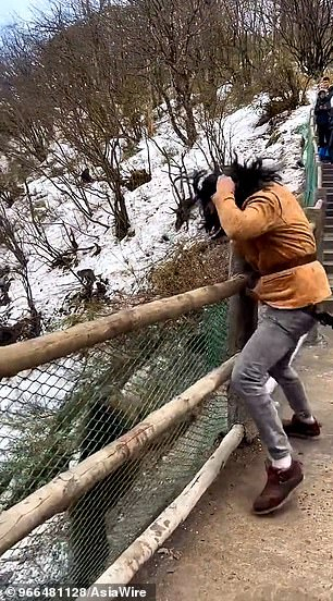 События развернулись на горе Эмэйшань: мужчина попытался погладить обезьяну, которая сидела рядом с ним.