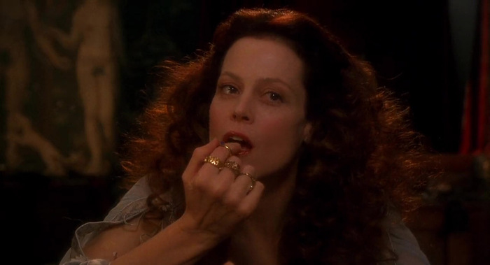 Ну и самое вкусное. На роль мачехи в фильм взяли Сигурни Уивер. И она как обычно хороша так, что и словами не описать. Мало того, что эту роскошную актрису было очень интересно увидеть в роли антагонистки, так она ещё и оттягивается в каждой своей сцене так, что любо-дорого смотреть. При этом без капли переигрывания или кривляний. Сигурни — богиня, так и запишите. Впрочем, что тоже стоит отметить, Моника Кина на её фоне совсем не потерялась, а создатели смогли хорошо показать, почему мачеха завидует падчерице (а не как в фильме с Шарлиз Терон).