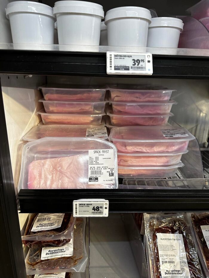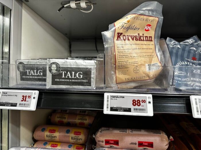 Кстати о субпродуктах небольшой корректив - если набор мяса привычный шведам входит в определённые рамки, то эти рамки шире чем у немцев, по крайней мере у молодого поколения в западной Германии. Довольно распостранён кровяной пудинг - некоторое подобие немецкой кровяной колбасы, но скорее более однородная масса, не такой грубый. Также есть достаточное количество любителей колбасок домашнего приготовления, чтобы в некоторых магазинах можно было купить кишки для колбас. Также легко приобрести говяжий ....смалец? сало? Не нашёл правильного перевода Talg (tallow) - но в принципе это тот же смалец свиной, только из бурёнки. Идеален для бургеров и в Германии днём с огнём не сыскать. Почки, куриные желудочки - всё можно найти в магазине. Но вот язык например - это уже посложнее. Про вымя я молчу.