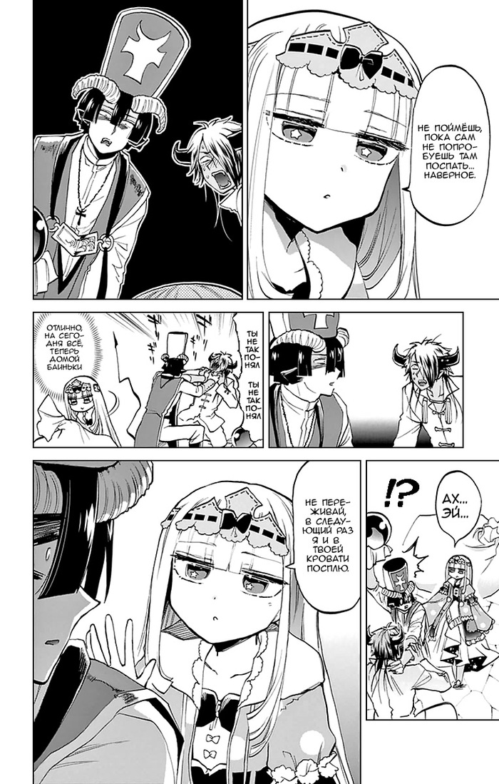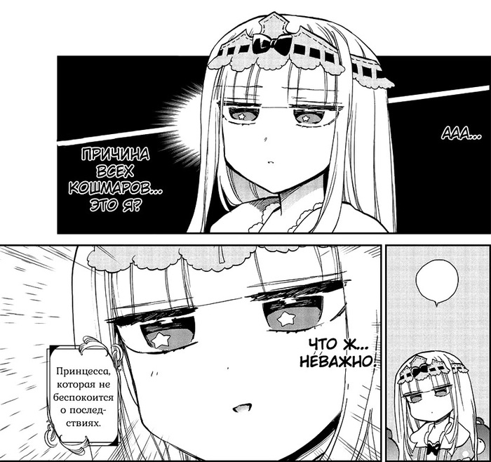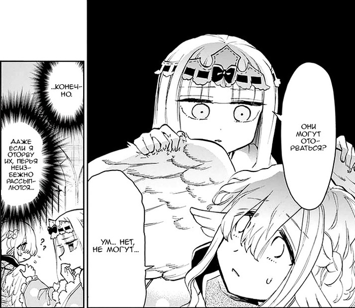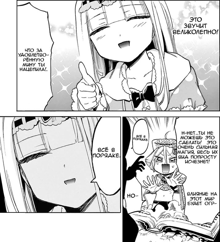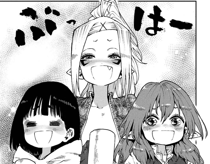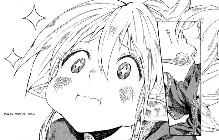 Примерно на середине я уже хотел забить на эту мангу, потому что смотреть на постоянно удивляющихся новым блюдам эльфов/гномов/фуррей уже надоедало. Но тут оказалось, что эльфы на самом деле не эльфы.