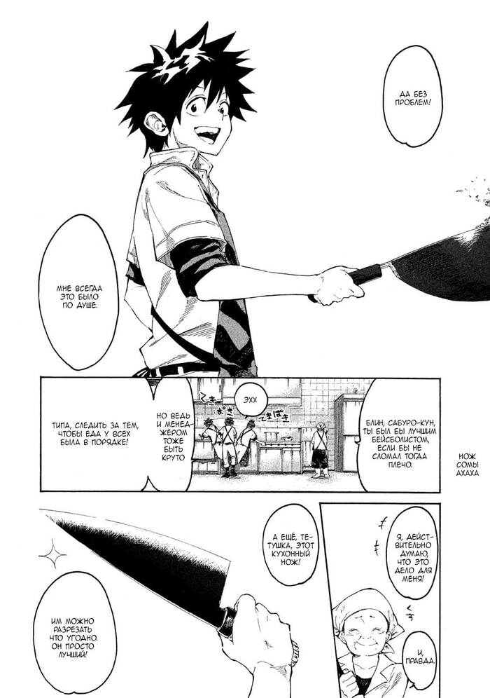 Жил-был ОЯШ по имени Сузуки Сабуро (Похожий на Мидорию Изуку который спёр ножик у Сомы). С бейсболом, из-за травмы не сложилось, ему пришлось завязать и он ударился в готовку. И было бы в его жизни всё хорошо если бы в один прекрасный день пойдя за капустой он не открыл"не ту" дверь. И исекайнулся (как метко пошутили в комментах) в Казахстан. На самом деле просто в неизвестную степь.