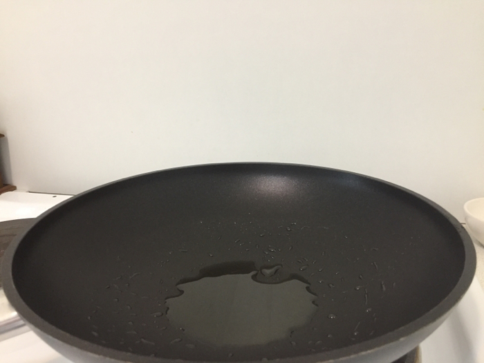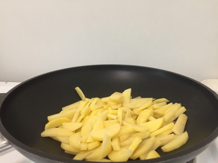 Пока резали и числили картошку. Нагревалась плита и сковородка. После того как нагрелась добавляем масла. Масла нужно больше, я просто жирное не очень люблю.
