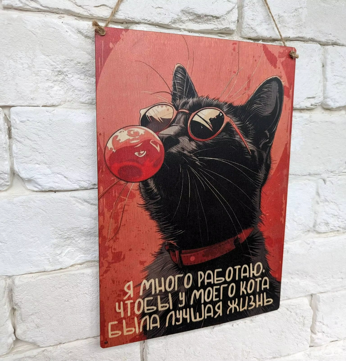 Табличка интерьерная дерево или металл "Жизнь кота". Ссылка на неё