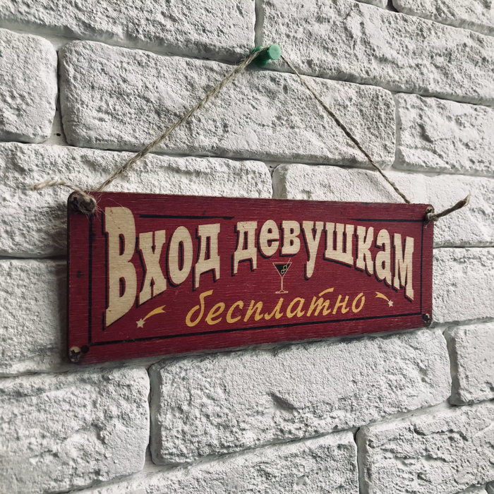 Табличка на дверь. Дерево/металл "Вход девушкам". Ссылка на неё