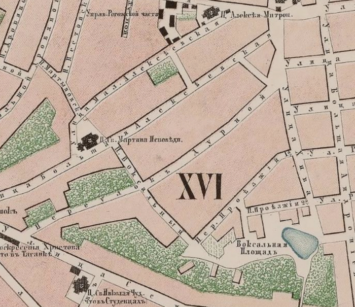 Тут не очень хорошо видно. Онако прочитать можно: переулок назывался Дурным. Карта Москвы 1825 года. С сайта www.retromap.ru.