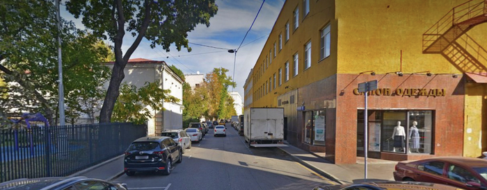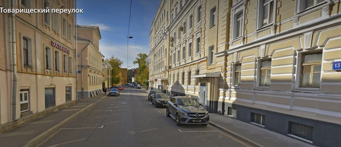 Товарищеский переулок в 2024 году. Вид чуть дальше здания МГАХИ в сторону Добровольческой улицы. Яндекс.Панорамы.
