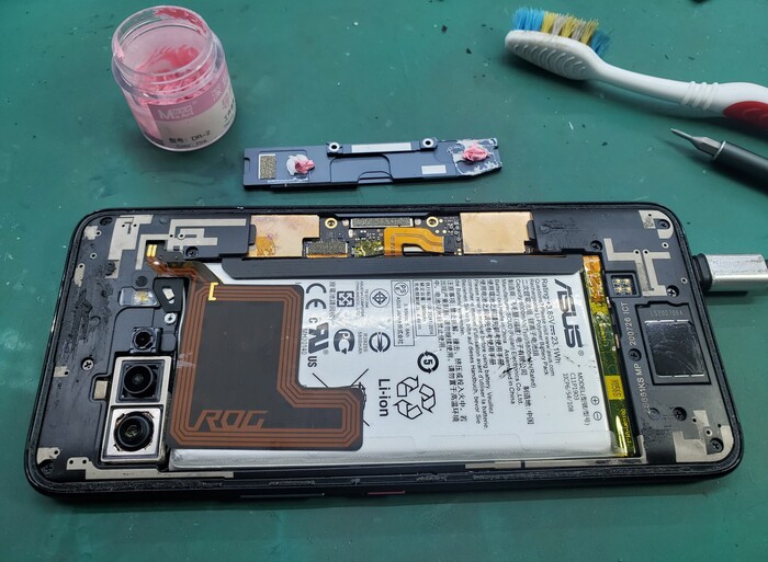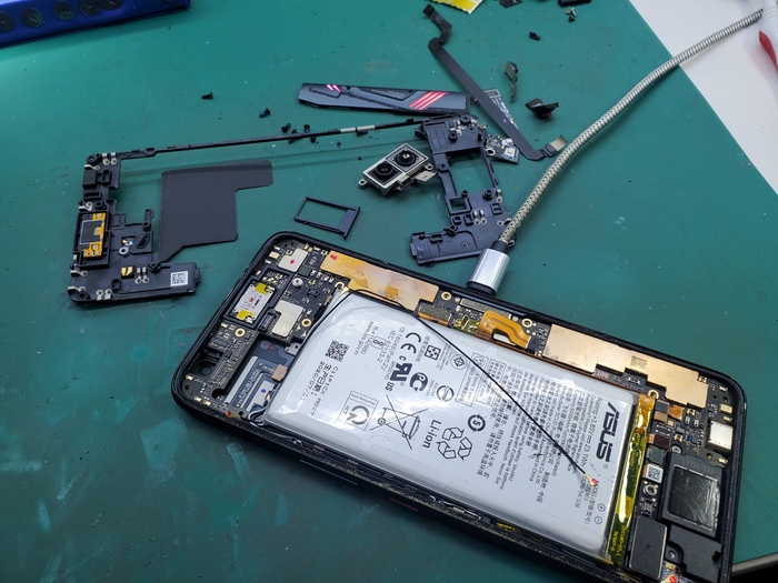 Процесс: открутил винты, нагрел по периметру феном (я выбрал 150С поток на максимум, грел на расстоянии, до температуры такой чтобы рука могла держать телефон), капнул спиртом по периметру, погрел еще, мощными присосками (откуда они без понятия, вроде в леруа купил) потянул экран снизу , периодически прогревая. как только появился зазор внизу вставил пластиковую карту на 1-2мм и аккуратно, без поддевания , надавливания и резких рывков провел картой по периметру не останавливая прогрев (срезав старую пылевлагозащиту). АККУРАТНО откинул экран (берегите шлейфы), открутил винты по инструкции (ищите в интернете), отключил сначала аккум, потом остальное, ЛУЧШЕ ТАК И ДЕЛАТЬ! Удалил наклейки из под аккум, установил новый (ничего не меняя и не перепаивая)! ВАЖНО! Удалил остатки старой проклейки экрана (пылевлаго) обезжирил, праймер нанес, приклеил новую пылевлаго!!! Подключил все кроме аккум, потом подключил аккум , проверил - работает, прикрутив все внутри, опять праймер нанес на уже на дисплей, закрыл аппарат, придавил по периметру для проклейки, закрутил винты. Готово.