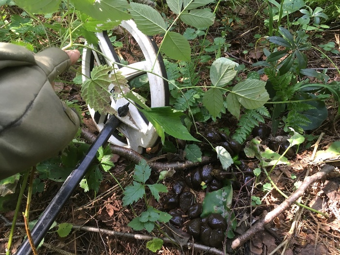 Пока я откапывал две старые подковы, где-то сбоку в кустах хрустели ветки. Я был уверен, что меня уже нагнали мои камрады. Поворачиваюсь, зову друзей, а в ответ тишина. Дохожу до кустов и вижу ещё дымящиеся какашки. Уж, простите но говно было явно свежее, кто-то ходил в туалет и при этом смотрел как я копаюсь в песке. Для медведя и лося данное произведение явно мелковато. Если это был кабанчик, то слава богу что почему-то я ему был не интересен)