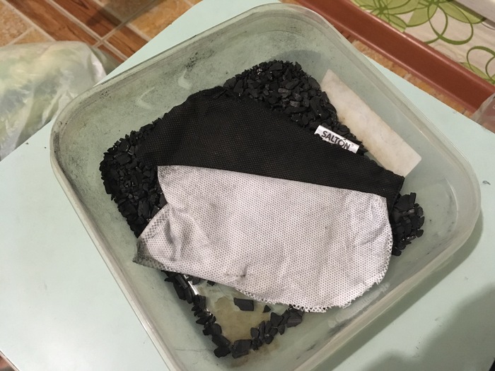 Что ж, возвращаемся к нашему тайнику. Целая неделя ушла у меня на то, что бы понять его содержимое. Многих интересовал не сам дисковод, а черный пакетик лежавший рядом. Увы друзья, тут я вас разочарую. Я тоже надеялся, что в нем золото и бриллианты) Тем более на ощупь там явно были какие-то камушки. Огромного труда мне стояло дотерпеть до дома и уже там вскрыть все вместе. Но, увы он был наполнен кусочками твердого угля! Как я понимаю, кто-то положил его туда на случай если контейнер вдруг начнет протекать, что бы уголь впитывал влагу. Это мое предположение не более.
