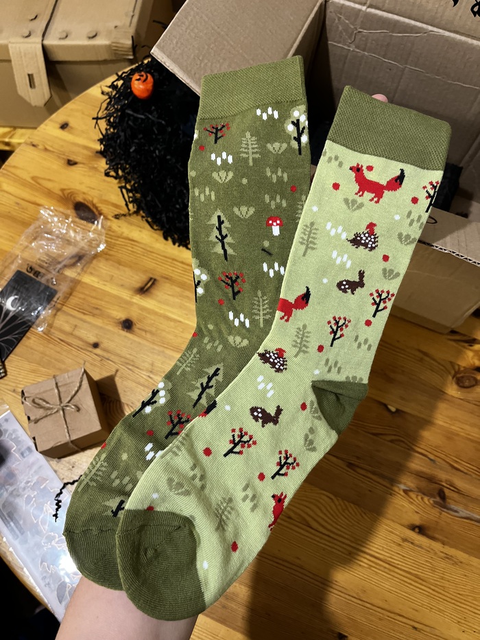 Я доставала и доставала из коробки подарки! Следом были обалденно классные носочки! Я очень люблю разнопарные носки, ну посмотрите какие они клёвые!
