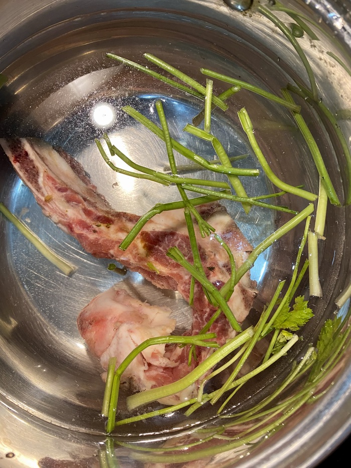 Лук делим его на 2 части: белую (ближе к луковице) и зеленую. Заливаем масло в глубокую сковороду (wok) и жарим белую часть лука на маленьком огне до появления ароматного запаха.