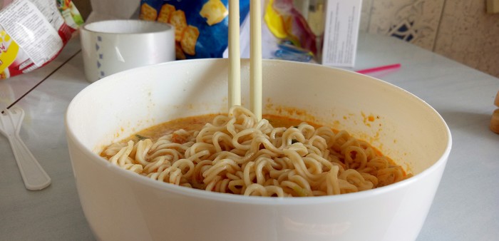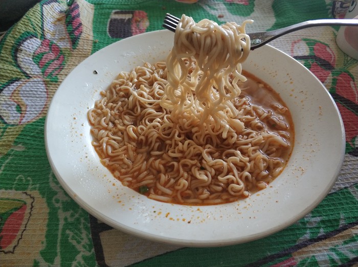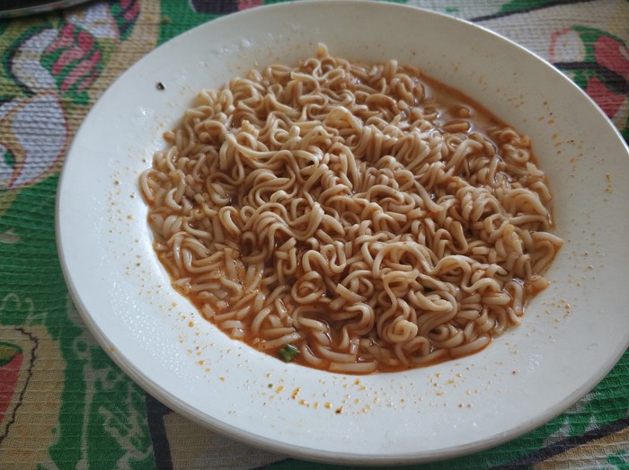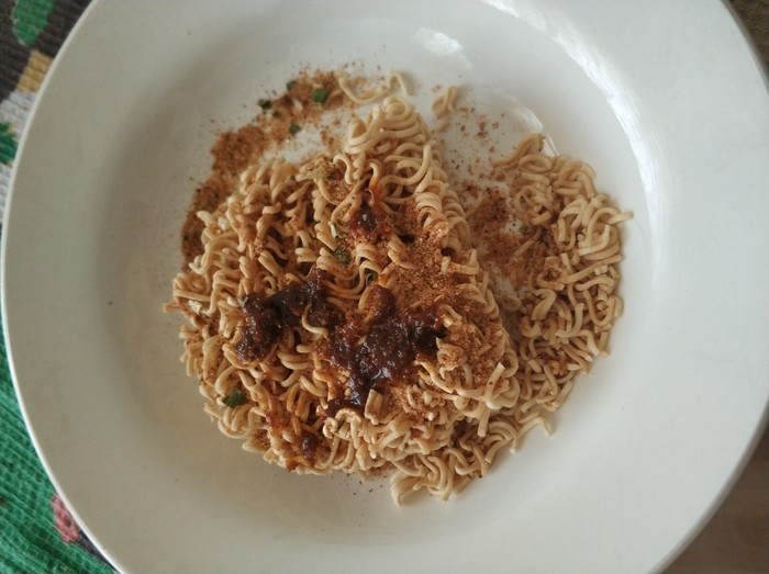 Заливаем кипятком и нюхаем: тот ли запах нам нужен. Да, этот запах похож на венгерскую "Азия голд", только отдаёт ещё чем-то жареным на заднем фоне. Возможно, благодаря вот такому оттенку жареного вкус этой лапши будет более полным. А возможно, мерзким: нельзя сказать однозначно, не попробовав - правда ведь?