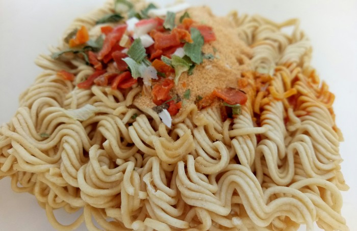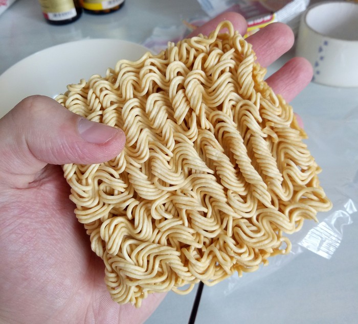 Рвать Машу, как же тут мало собственно лапши! Для сравнения - в коробочке "Доширака" - 90 грамм, а тут - 65, то есть в полтора раза меньше. Даже меньше, чем "Роллтон" в пакетике.
