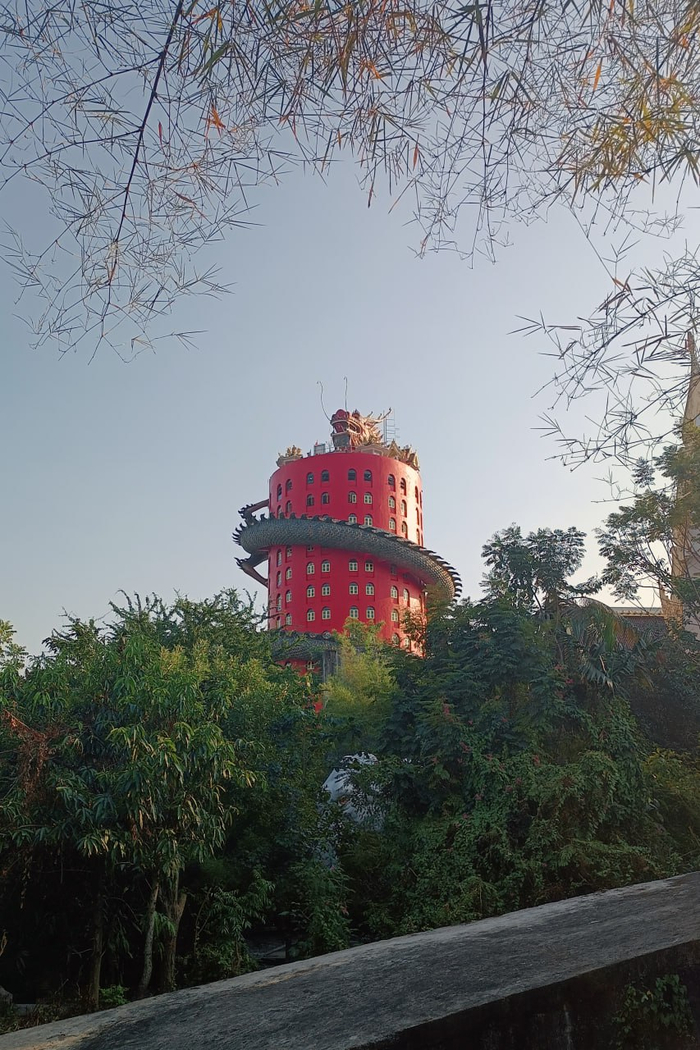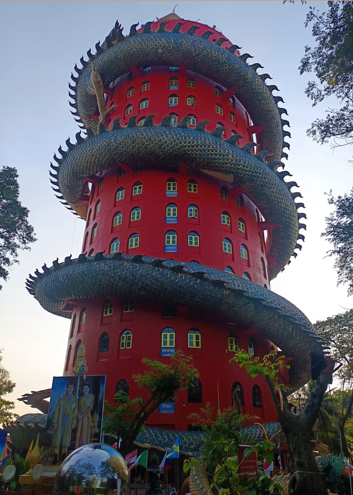 🐲 Сам храм очень отличается от привычных буддистских храмов — 17-этажная розовая цилиндрическая башня, вокруг которой спиралью обвивается огромный дракон. По задумке создателя, подъём внутри тела дракона символизирует путь человека — от земного к духовному.