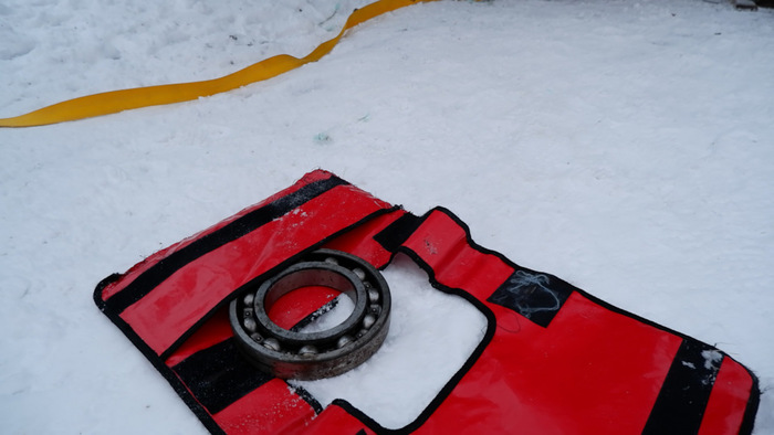 На месте нас встречает героический Дмитрий, лютый ветер и прекрасная "колбаса" их тросов, которая не дотягивается до твердого места. Предыдущие попытки дернуть приводили только к тому, что автомобиль-помощник начинал закапываться в рыхлом снегу.