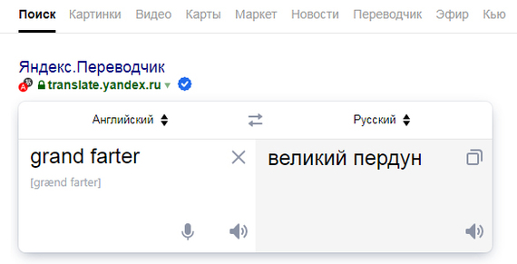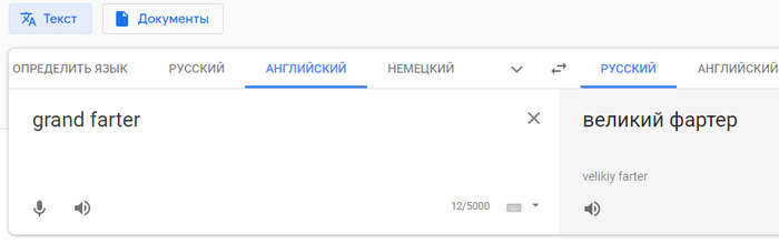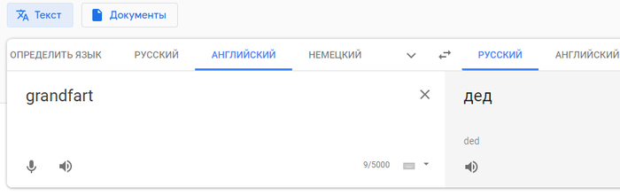 Целое слово он перевёл тоже как дедушка, а при разъединении на два, вторую часть он просто озвучил в транслите.