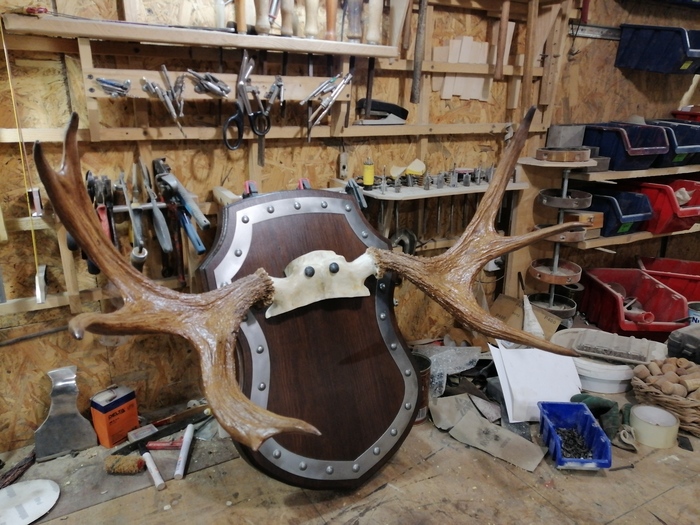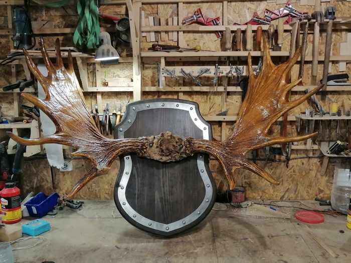 Все началось, когда заказчик привез красивые рога лося и попросил сделать для них подставку - медальон.