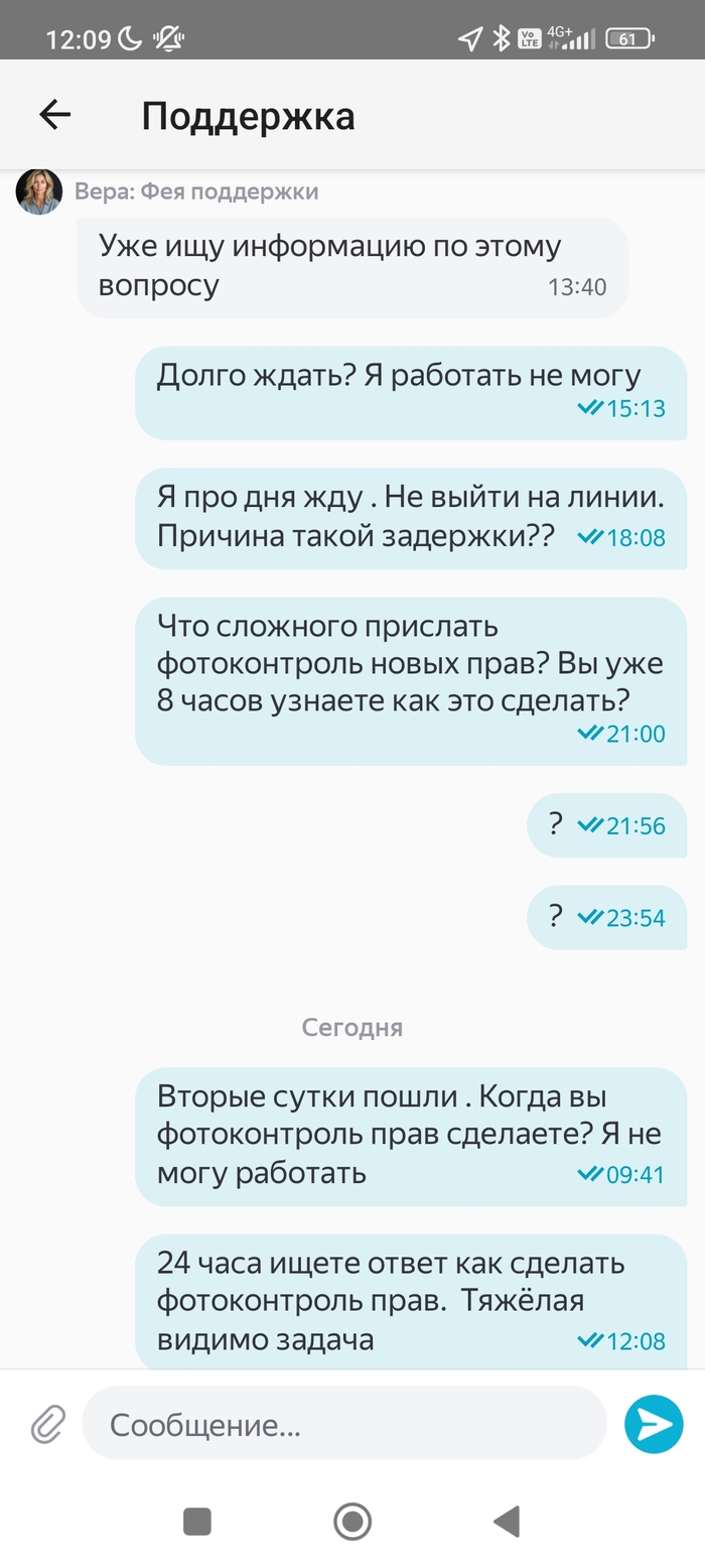 Что то последние недели поддержка стала работать отвратительно , в чате по 8 10 часов приходиться ждать ответа, а то и сутки, при чем не важно что спрашивать, работников не хватает что ли? Чтоб дозвониться сначала надо 5 минут прослушать рекламу про новую программу лояльности потом 10 минут ждать оператора который говорит что заявка в работе ничем не могу помочь, это только в чате решатся, а всего то попросил фотоконтроль водительского нового сделать , прям видимо супер сложный вопрос что уже больше 10 часов решают как это сделать ) Мне из за этого не выйти на линию так как Осаго такси надо покупать чтоб новые права были вписаны а не старые