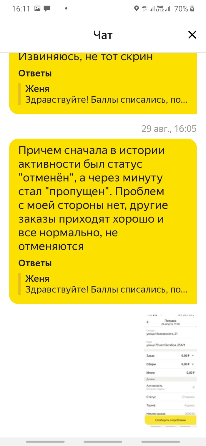 2. ГЛЮЧНЫЙ, РЕЖУЩИЙ АКТИВНОСТЬ ЗАКАЗ. Я не сторонник теорий заговора, но все мои приятели курьеры уже изрыдались горькими слезами - если у тебя 95 и более активности и ты получаешь сотку за час без заказов, обязательно придет так называемый глючный заказ - он приходит без звука и длится ровно секунду, что принять его не успеваешь, активность снижается на 8 баллов и восстановить ее уже не получится, в поддержке сидят боты, что отвечают увы и ах.