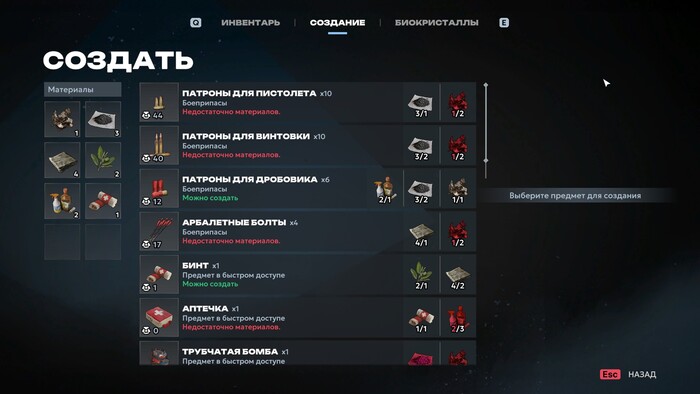 Имеется богатый крафт, который расширяется по мере прохождения. Ресурсы для создания предметов можно найти в мире или они выпадают с противников.