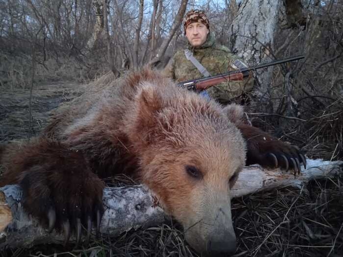 Первое участие в охоте на медведя. Фото после добора... Посмотрите на мои аварийные глаза. Адреналин, мать его.
