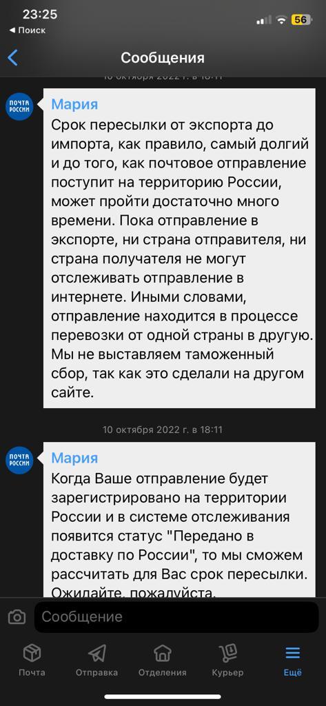 Начинаю писать в почту России через приложение и через службу поддержки.