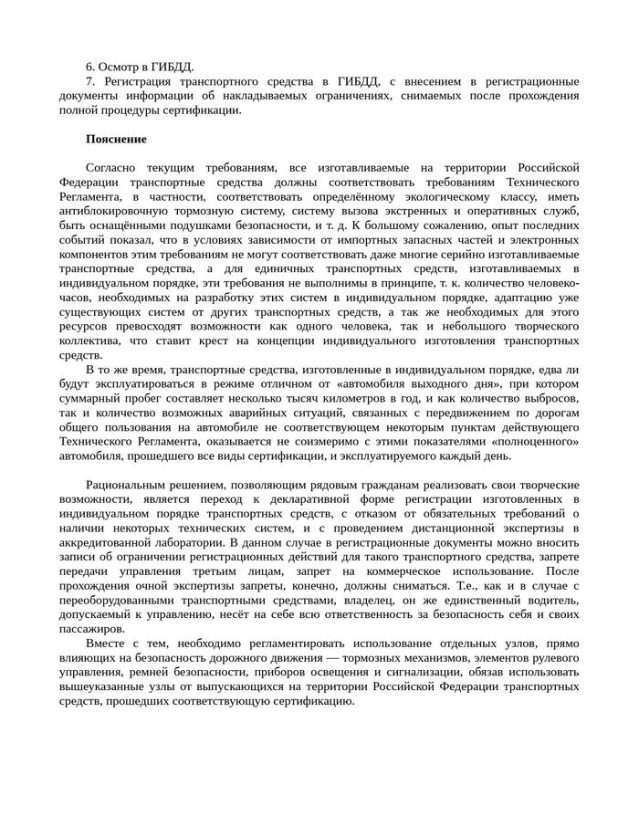 Однако, как всем известно, в данное время у нас действует Технический Регламент Таможенного Союза, который не только по факту запрещает любой тюнинг и доработки, т.к. они теперь должны проходить испытания в аккредитованных лабораториях, которых на всю страну порядка 25, половина из которых находится в Москве и Московской области. А кроме того, крест ставится на всех самоделках, т.к. для них установлены требования, эквивалентные требованиям к серийно выпускаемым автомобилям и мотоциклам.