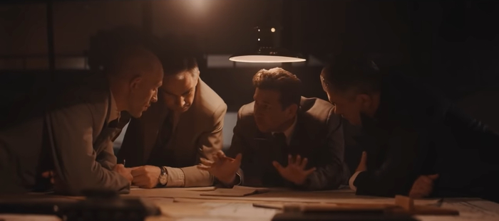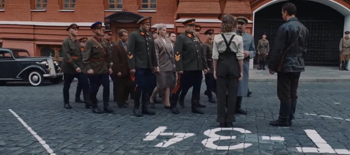 Ну ладно возвращаемся к просмотру фильма. Далее идут стилизованные титры под эпичную музыку, после которых нас кидают на Харьковский завод. Сотрудник НКВД получавший сообщение, бежит в конструкторское бюро и сообщает Кошкину, что погрузка танков отменяется, так как техника к смотру не допускается.