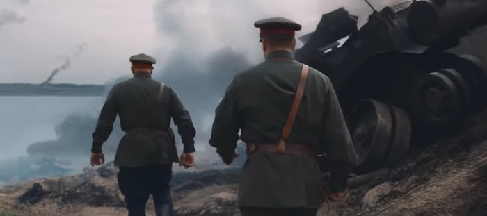 Затем нас переносят на берег реки Халхин-Гол, во время боевых действий против Японии. Два каких то советских военачальника, ходят среди сожжённых советских же танков и говорят, что танки по сути фуфло и никуда не годятся, нужны танки другие что бы в пекле не плавились. Хотя составленные по итогам боев отчеты свидетельствовали немного обратное: