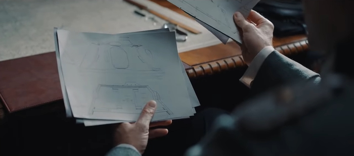 Ну а нам показывают, как некая таинственная фигура, без палева, среди бела дня, делает фотографии чертежей танков, на миниатюрный шпионский фотоаппарат. Охрана государственных секретов поставлена на высочайшем уровне, для чего тут сотрудники НКВД на заводе вообще не понятно.