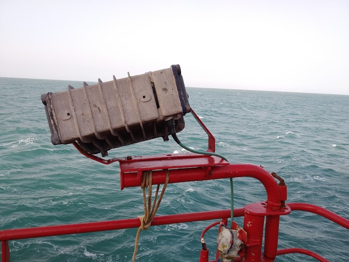 Так передают документы. На проводниках, к которым привязаны наплава-буйки. Такие же буйки привязаны и к концу шланга и швартового конца. На фото выше можно увидеть эти буйки уже на борту рыбака.