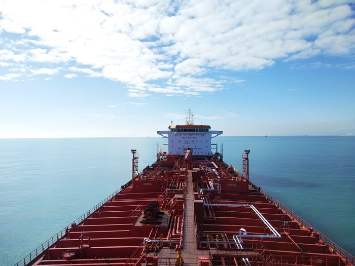 Кореец подходит к танкеру. Вот эти штуки, вываленные за борт, это и есть люстры. С очень мощными лампами, свет которых привлекает кальмара. Способ швартовки - бакштов. Мы травим концы с кормы, рыбак принимает их на борт, крепит. Следом мы травим шланг, корейцы также достают шланг, цепляют к своему хвостовику, и начинается перекатка топива. В это же самое время идём малой скоростью.