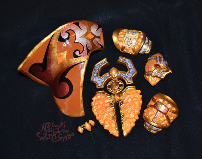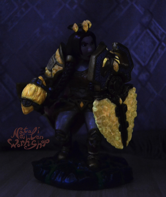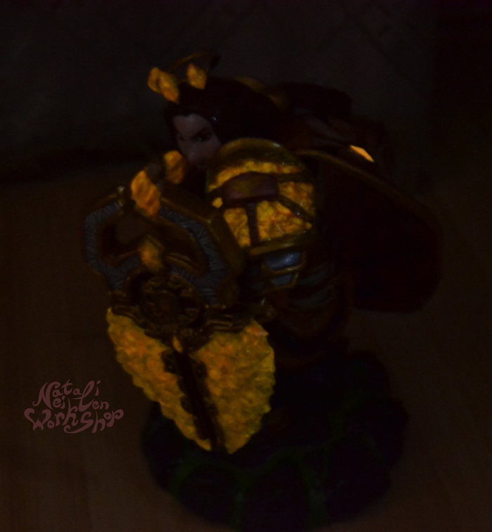 Светятся в темноте: молот, щит, корона, наплечники, кристаллы в поясе и на плаще.