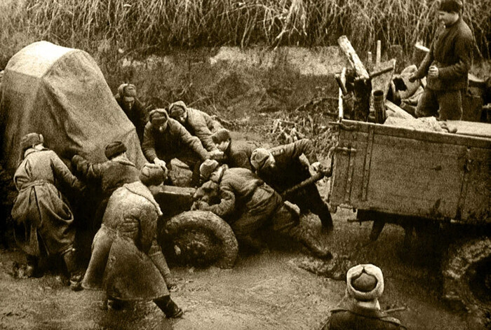 Здравствуйте Уважаемые читатели! Генерал Грязь против Красной армии. Зимой-весной 1944 года на правобережной Украине разыгрывается маневренное танковое сражение, которому мешал "генерал-грязь". Машины безнадежно застревали в грязи, что-то перевозить было возможно только на танках, либо на себе пешком. По воспоминаниям ветеранов, огромную помощь в переноске боекомплектов оказывало мирное население, настрадавшееся от врага. Поэтому, не смотря на все невзгоды, наши деды шли вперед, и после войны в погоде не искали оправданий, в отличии от врага, которому было то мокро, то холодно. Отмечу, врагу это не помогло удержать позиции, он динамично отступал на запад, бросая танки сотнями, об этом Гитлеру докладывал и Гудериан. Кстати, грязь давала больше возможностей Т-34 в противостояниях с "Тиграми". А у меня все. Еще больше фактов на канале "Наша история это Гордость" в ТГ. До свидания!