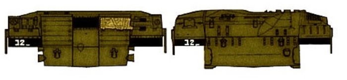 На всех танках роты кроме гимеля есть по три одинаковых щита - два на бортовых сторонах корзины и один на кормовой. Гимель - исключение, на нём таких щитов только два по бортам, а на корме висит длинный щит с полным названием роты, как правило, художественно исполненным. Учитывая, что большинство наборов Меркавы вкладывают декали именно с гимелем, это очень важное замечание. Детали - в следующем пункте.