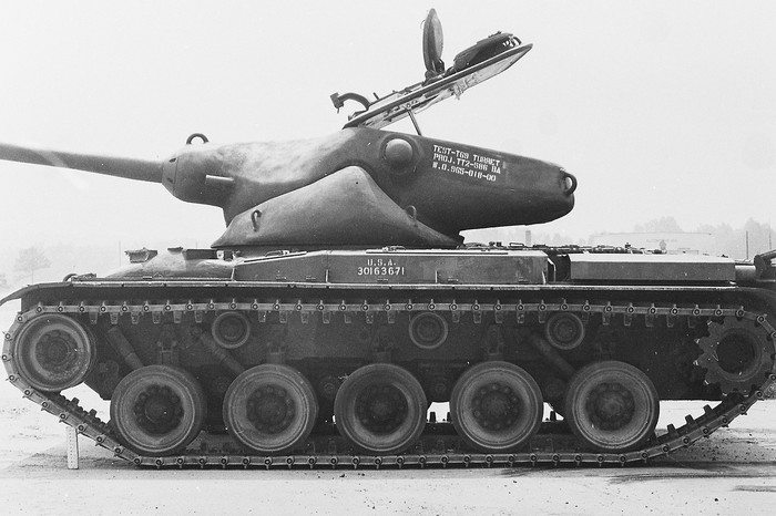 В середине 1950-х годов в рамках работ по созданию танка, применимого в условиях ядерной войны, конструкторы из американской компании Chrysler представили необычный проект танка под обозначением TV-8.